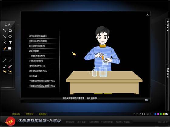 演示动画对实验操作中容易出错或是操作不规范的地方进行形象的动画演示。演示动画不仅方便老师教学使用对初学化学和化学基础较差的同学帮助也特别大。
